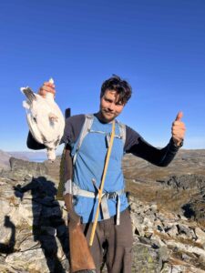 Bakgrunn: Født og oppvokst i Asker med skiløyper, fotballbaner og skog som nærmeste naboer. Etter halvannet år som grensejeger i Finnmark var det åpenbart at det var friluftsliv, jakt og fiske resten av livet skulle vies til. Dermed ble bachelor i arktisk friluftsliv og master i idrettsvitenskap på UiT i Alta den eneste naturlige veien videre. Er han ikke på jobb er han som regel å finne i en bratt fjellvegg, med hagle på ryggen eller ski på beina, og helst begge deler.
