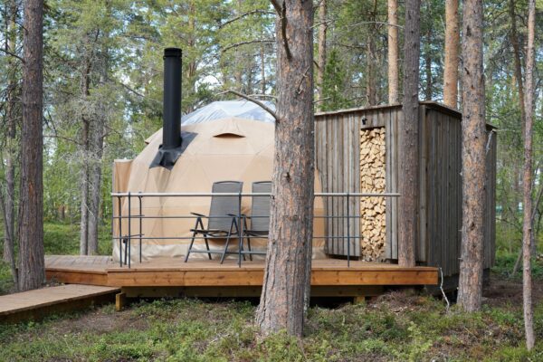 Furuskogen ved Glød inneholder mer enn hare, elg og rev! Her kan en bo i våre superstilige Aurora Canvas Domes, der taket og deler av veggene er gjennomsiktig, noe som gir en eiendommelig følelse av å ligge inne i naturen. Lydene utenfra er med på å forsterke opplevelsen. Senga fra Wonderland er stor og komfortabel, og ovnen er med på å skape lun varme om kvelden blir kjølig. På terassen kan midnattssola nytes mens en nipper til et glass med noe godt i. Domene har toalett, strøm, wifi og varme i gulvet, men ikke innlagt vann. Dusj og badstue kan nytes derfor i hovedbygningen bare femti meter unna.