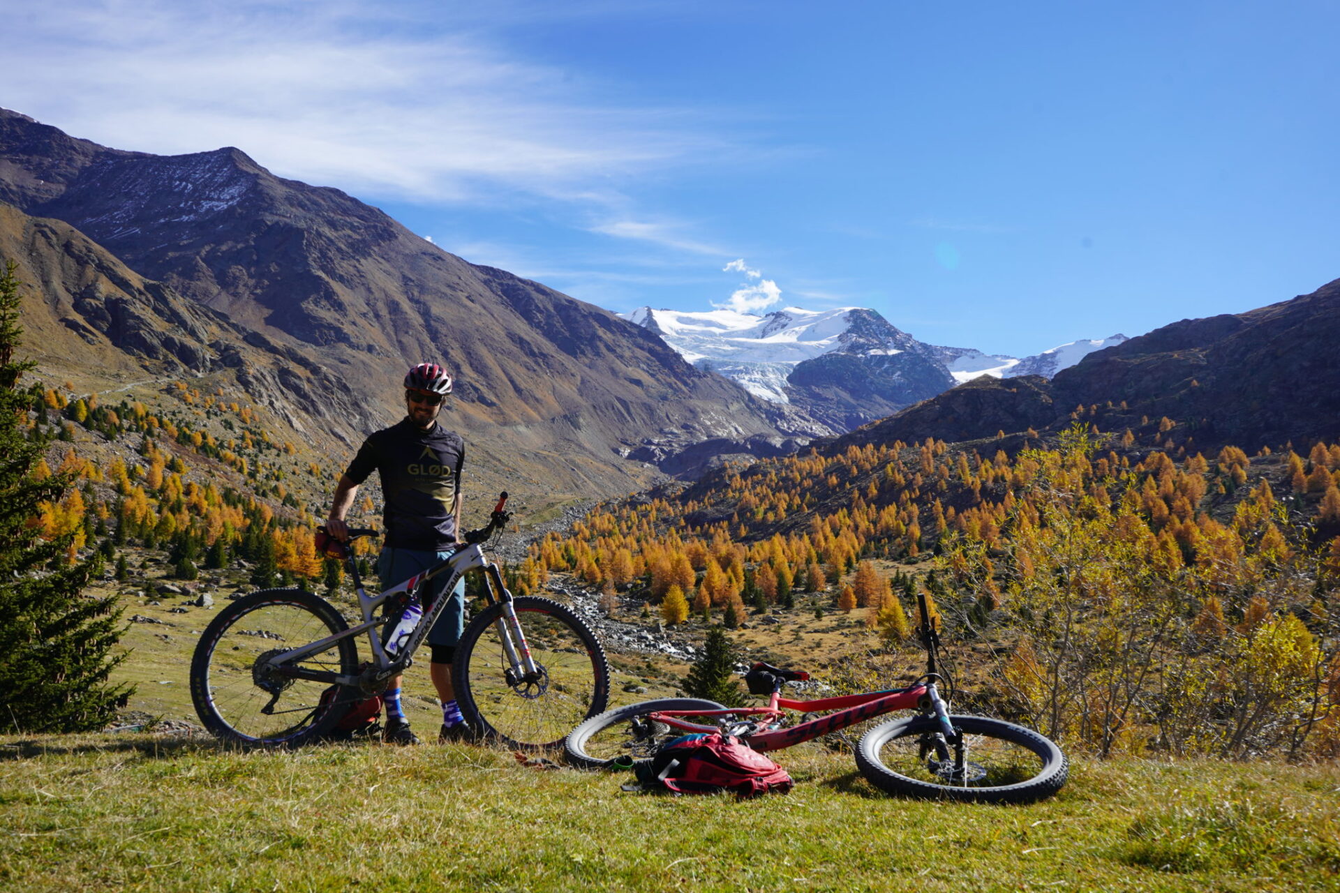 Alpene er vakkert, nesten uansett hvor du snur eller vender deg. Høye, alpine fjell, dype daler. Isblåe vann og elver, og grønne lier. Og isbreer! Mange områder tilbyr også bra terrengsykling. Under planleggingen var vårt ønske å finne et område der en kunne sykle en uke, minst, langs stier og tråkk som tilbyr variert og god sykling. Og nye stier hver dag!
