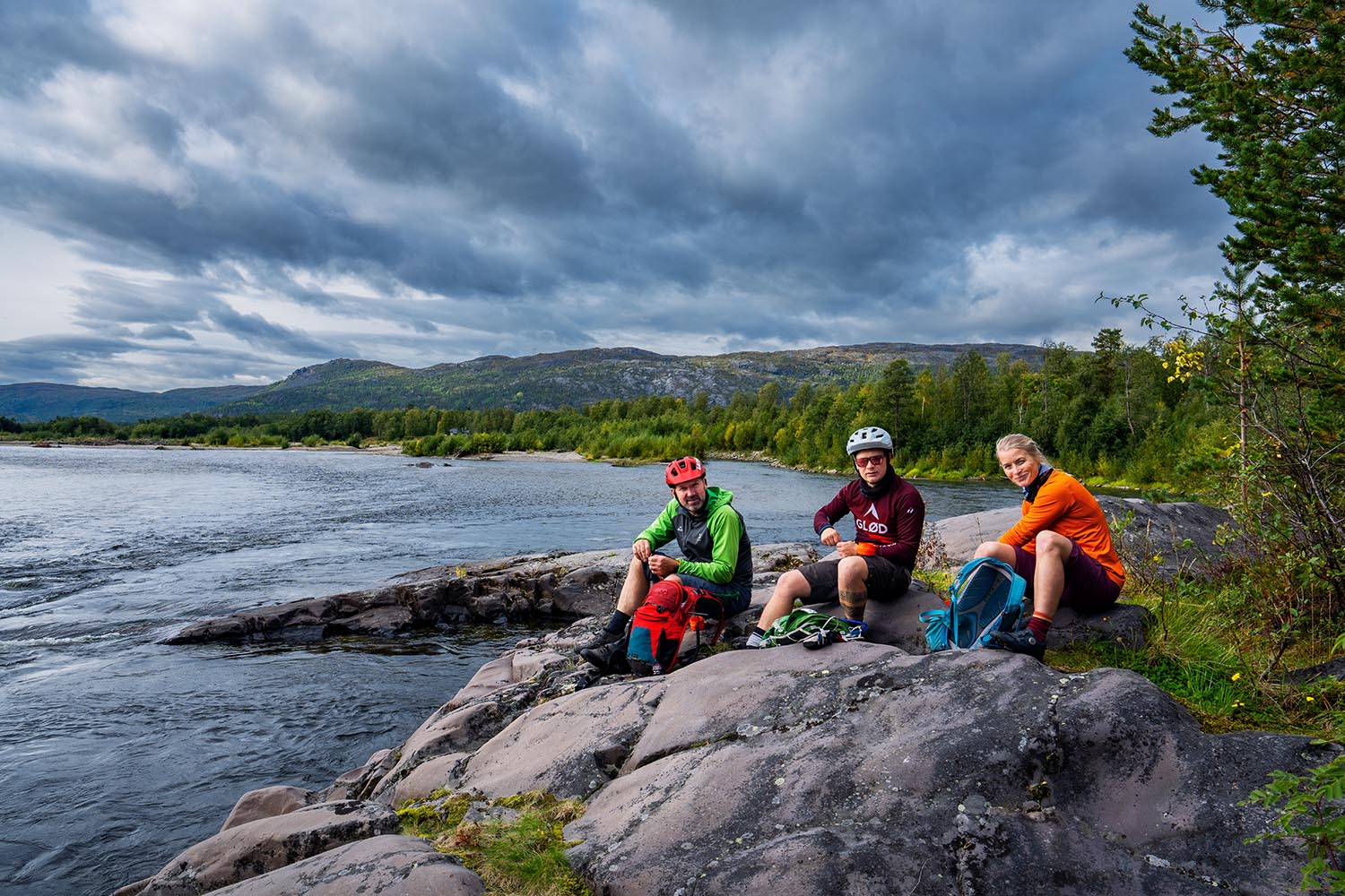 Underveis på sykkelturen blir det lunsj-stopp. Gjerne langs Altaelva som regnes som en av verdens beste lakseelver. Les om laksefiske i Altaelva her eller om historien her.