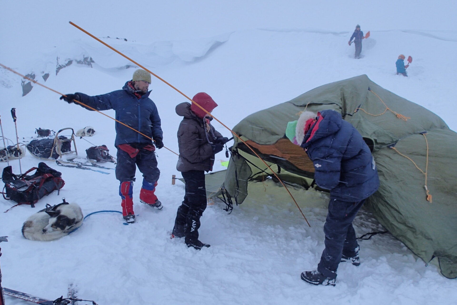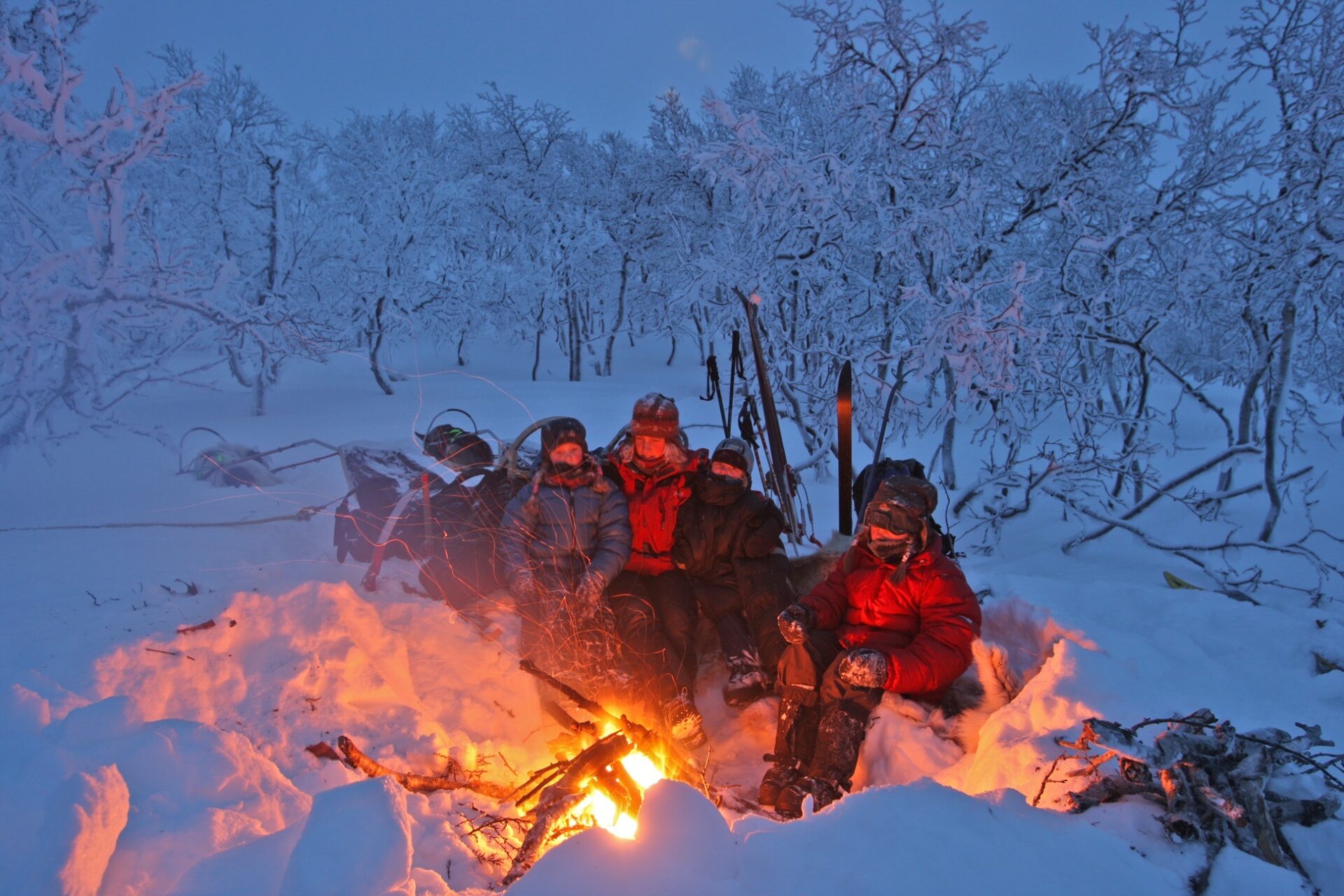 På slike turer er det en stor fordel å ha med polarhunder – og det vil vi også ha med her. Alaskahuskyen – som er den samme type hund som brukes i Finnmarksløpet – er super-sosial og kjempesterk. Den elsker å være på tur, og det den liker aller best er å hjelpe til og å være i lag med folket sitt. Huskyene trekker derfor pulk på våre vinterturer – og det er til fantastisk god hjelp. Da er det mulig å få meg både gode klær, god mat og litt ekstra snop til kosen.