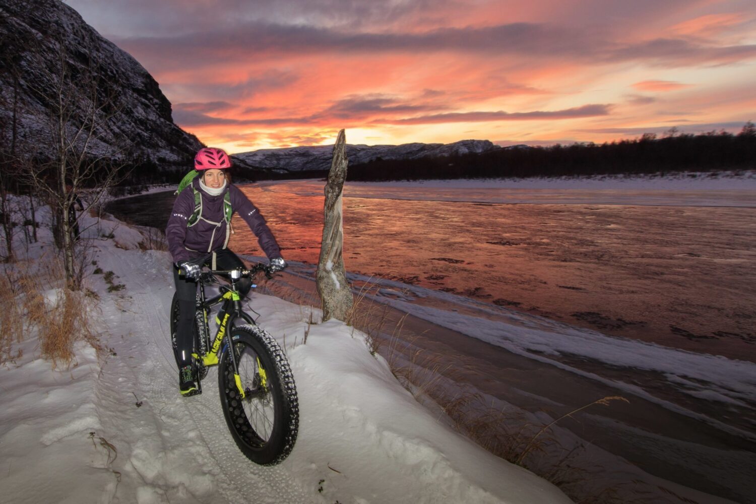 We will determine the length and level of the trip based on the participants’ fitness level and cycling experience. The normal biking time will be 60-90 min. To participate in this activity, you need to be able to ride a bike and must be in normal physical form. Riding a fatbike is surprisingly easy. However, it does not power itself and you need to provide the necessary pressure on the pedals and forward thrust.